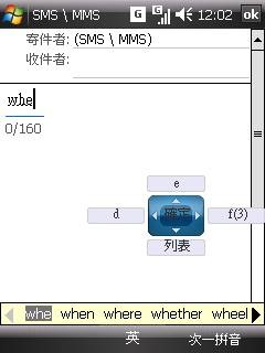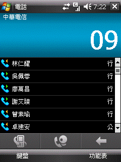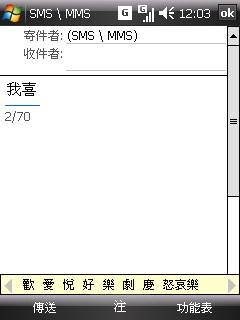 而如果用在輸入簡訊文字的話,打英文字的速度就跟手機輸入英文的速度接近,加上在輸入時就有自動完成,算是蠻快的;而如果用注音輸入中文,我覺得輸入速度很快,比 TyTN II 的 QWERTY 鍵盤還快,因為他有相關字和自動完成不需要輸入聲符就可以選字,而且鍵盤的排列方式很容易摸熟,不像 TyTN II 要搭配 Fn 鍵,而且排列也很複雜,比較不好用。在輸入的過程中,可以搭配觸控螢幕選字,但字有點小,不方便用手指直接點。