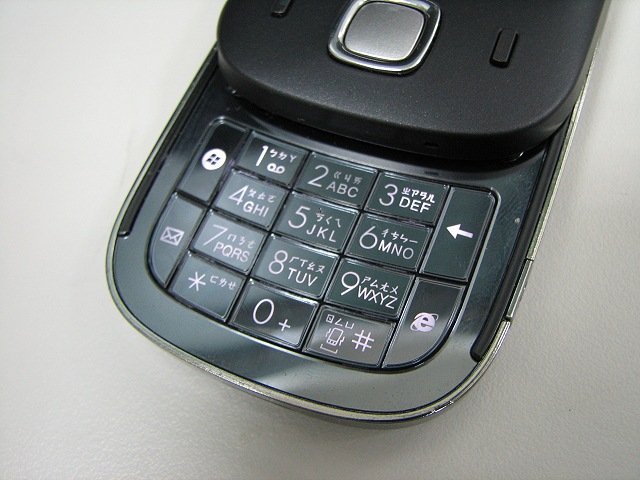 推開滑蓋可以看到 Touch Dual 的鍵盤,我覺得這個鍵盤就很塑膠了,鍵盤上跟印有跟智慧手機系列相同排列的注音符號,可以用注音、倉頡、筆畫輸入中文,也可以輸入英文。除了 12 個標準數字鍵以外,旁邊開始、倒退、IE 和訊息中心四個快速鍵。