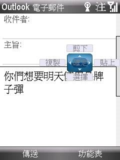 HTC S730 內建的輸入法是 MultiPlay 輸入法,只要你把鍵盤背熟,搭配輸入法本身的智慧組字和自動完成功能,無論是用 QWERTY 鍵盤或數字鍵輸入,都比用 PDA Phone 那個微軟內建的輸入法快太多囉!同時,MultiPlay 輸入法也有未來 WM6.1 才有的剪貼簿,可以剪下、複製和貼上的功能。來看看操作畫面: