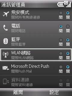 HTC S730 的通訊管理員也更新了一下,改成有文字說明的版本,同時也清楚的指示現在到底是開還是關,把不常用的按鈕也拿掉,比較簡單一些。