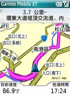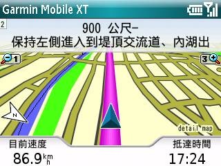 ▲ 在 HTC S730 上執行 Garmin Mobile XT 導航系統