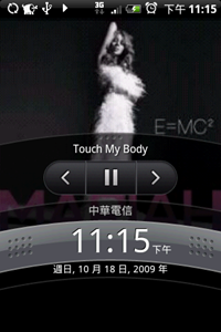 尤其是音樂播放,像我都會把 HTC Hero 接到車用音響上面 (當 iPod 來用),每次要切換前後首或暫停播放的時候,在解鎖畫面就可以操作了!