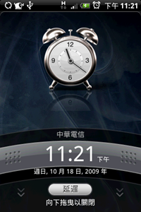 HTC Sense 將原本單調的解鎖畫面,改成可以用按鍵或滑動的方式解鎖和接聽電話,比原本只能用按鍵的單調畫面好看太多囉!