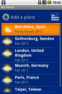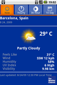 ▲ The Weather Channel,我覺得實在台北太不準了,還有 Widget 不方便 (沒辦法同時和時間、行事曆擺在同一個桌面上) 之外,這個軟體其實還不錯,提供的資訊蠻多的,是 Android Market 上面第一名的軟體