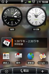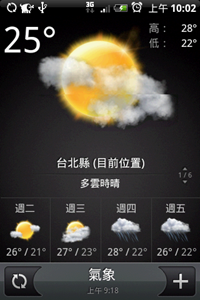 在 HTC Sense 之前,如果要在 Android 系統上看世界各地的天氣就只有從 Market 下載 The Weather Channel 或 AccuWeather,另外台灣的有「台灣天氣圖」可以下載。可是總覺得介面不太漂亮,而且 The Weather Channel 在台北的準確度實在是...。另外時間部份也是,鬧鐘和時間不在同一個畫面裡面,也沒有內鍵碼錶和世界時鐘,而且桌面上面的 Widget 也只有一個樣子… (Windows 7 可以有 8 種耶) ,也只有一個時區...
