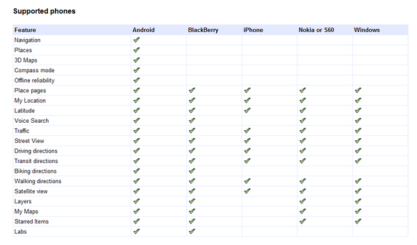 - Google 地圖在各種手機平台上面的比較: