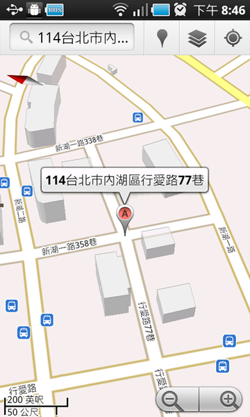 例如說,我要找內湖區行愛路 77 巷,我就直接用說的,Google 語音搜尋可以幫我搞定!