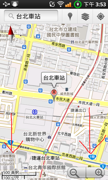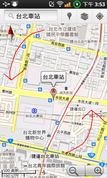 就算有地圖但是搞不清楚東西南北,剛從地鐵站出來找不到路也是挺正常的,該怎麼辦呢?用 Google 地圖 5.0 內建的功能,拿著手機地圖就會隨著你的方向轉,這實在太棒了,要不然光有地圖也看不懂要怎麼走,也不是辦法